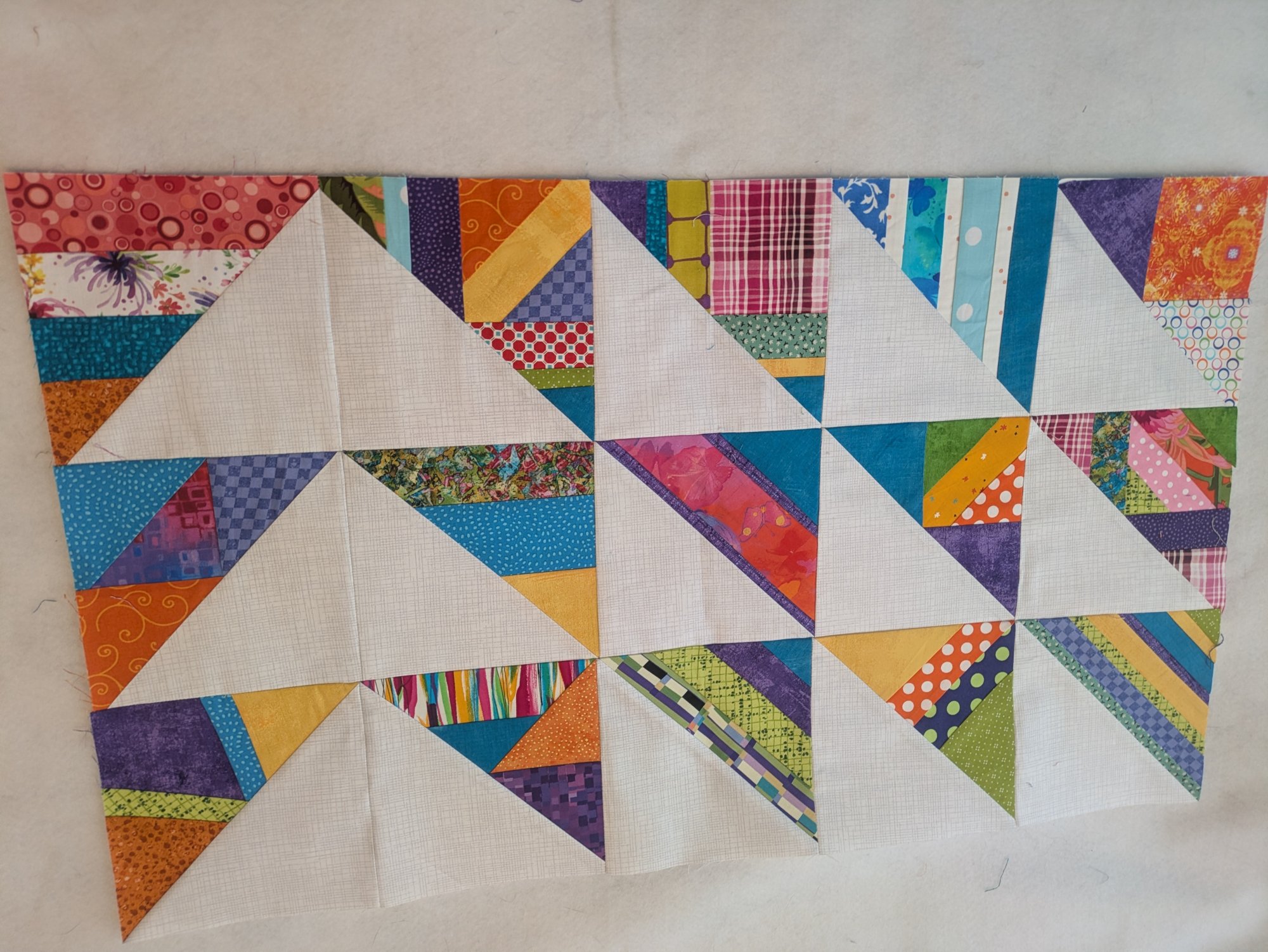 Learn a new technique or brush up on your skills, using Leila Gardunia's Scrappy Triangles. This is a perfect way to use your scraps or choose fat quarters for a more coordinated look.